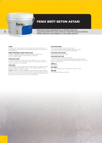 yüzey aderansını artırmak amacıyla kullanılan akrilik emülsiyon esaslı dolgulu iç ve • Fenix Süper Brüt Beton astarı uygulamasından sonra en geç 7